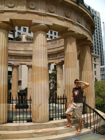 Dnes, na prvy sviatok vianocny sme sa boli previest v meste. Na foto je pamatnik pre vojakov padnutych v I. a II. svetovej vojne na Anzac (Australian and New Zealand Army Corps) Square.