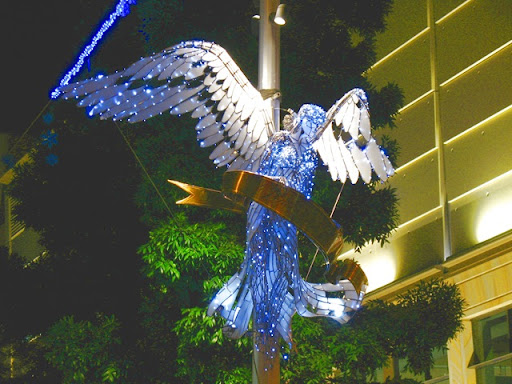 Toto je ten anjel, ktoreho fotky ste uz videli, ale len dennu verziu :). V noci takto krasne svietia...je ich na Queen Street niekolko.