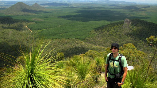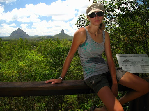 Stanik (ziva a zdrava dole:) v pozadi s Mt. Beerwah a tym druhym