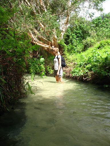 Najskor sme sa rozbehli proti prudu, ale prislo nam lahsie vyjst par metrov oproti prudu po drevenom chodniku a zist ten potok po prude az do ustia do mora