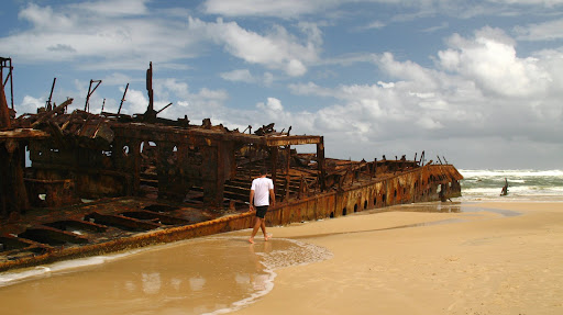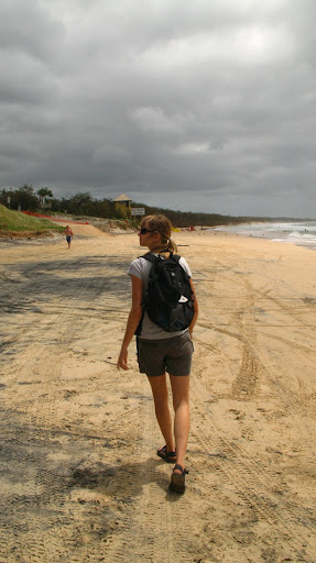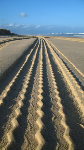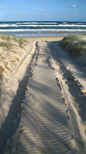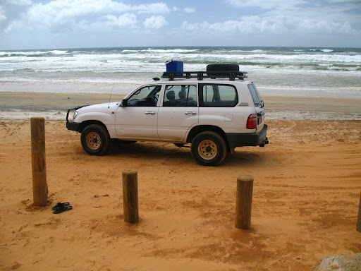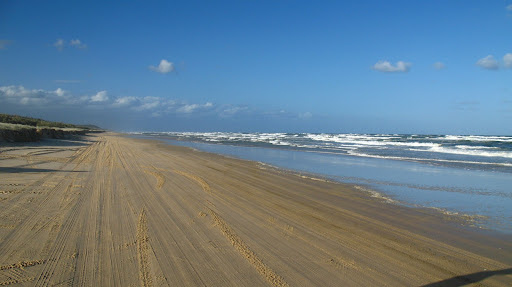 75 mile beach, ktora sa tiahne celou vychodnou castou ostrova - dialnica ostrova:) (4WD sa po nej prehanaju 100km rychlostou, ba dokonca sme sa museli uhybat pristavajucemu lietadlu:) Zapadnou plazou sa neodporuca jazdit, vraj tam nie je ten piesok taky stabilny.