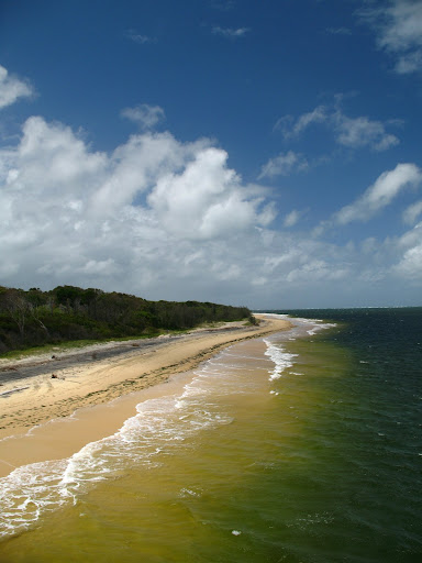A toto je prvy pohlad na juznu cast Fraser Island z trajektu