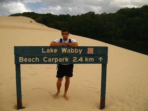 Ahoj vsetci! Dnes je nedela 2.3.2008 20:00 vecer a my sme sa vratili zo skveleho vikendu na Fraser Islande, ktory je cca. 3,5 hodky autom z Brissie. Najskor sme planovali ist sami vlakom na pobrezie, odtial pozicat 4WD a na ferry vyrazit na ostrov, ale zmenili sme nazor, pretoze taky vylet by nas vysiel dost draho. Tak sme sa rozhodli vyuzit sluzieb cestovky, ktora organizuje podobne vylety a ukazalo sa to ako spravny krok, pretoze nas vyzdvihli v Brisbane na 4WD a odtial sme sli az na ostrov na rovnakom aute (Toyote Landcruiser alias "auto nezmar", pretoze to, co dokazalo na tych pieskovych dunach...hm, klobuk dolu. Minule sme pozerali nejaky dokument o zivote v strede Australie, kde nie su normalne cesty a stary aboriginec povedal: "Thanks God we have Toyotas", cize vdaka Bohu, ze mame Toyoty:)...uz vieme preco!) V aute nas bolo iba 5 plus vodic Darren z tej cestovky (asi 30 rocny dlhovlasy, bradaty typicky Ozzy, vsade chodi bosy, teda ked tankoval, tak bosy, ked bol s nami v pralese, tak bosy..)
