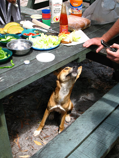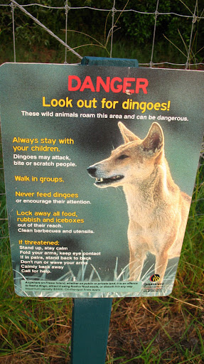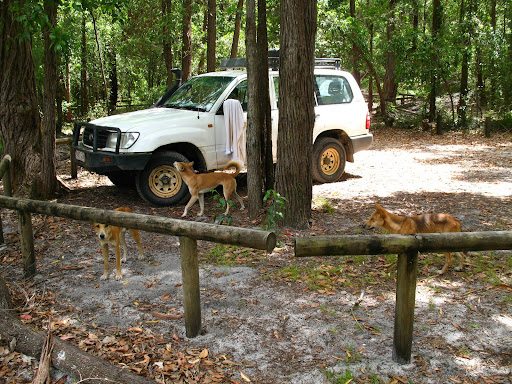 Na ostrove zije niekolko divych psov Dingo, zopar sme ich videli na plazach a tam boli celkom plachi, ale ked nam Dareen poobede spravil piknik, tak za chvilku k nam dobehli dokonca traja hladovci. Od roku 2001 kedy na Fraser Islande napadol jeden dingo 9-rocneho chlapca, ktory na nasledky pokusani zomrel, tak je prisne zakazane krmit Dingov a nechav jedlo len tak. Pokuta min. $225, max $3000.