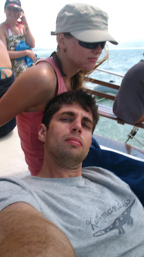Treti den bol pohodovy s pohodovym pocasim, az na malu nehodu na palube, ktora sa stala tej svajciarke. Pri plachteni chcela zojst do podpalubia a pri hlupom manevri sa jej smyklo a takmer skocila v oceane. Spadla dost hrozne na koleno, ktore sa najskor javilo ako zlomene, ale nastastie nebolo... kvoli tomu, ze lod bola naklonena a plachtila vo vlnach, Paul ju musel drzat na palube az kym sme sa nedostali na kludne more a neskor ju vylozili v pristave, aby ju zobrali na RTG. Potom nas vzali este na dost nezmyselnu okruznu plavbu hore dole a hotovo, cize ziadne potapanie na posledny den, skoda tej nehody...este k tomu som aj stratil svoju siltovku, ktoru som nasiel v smetiach:(